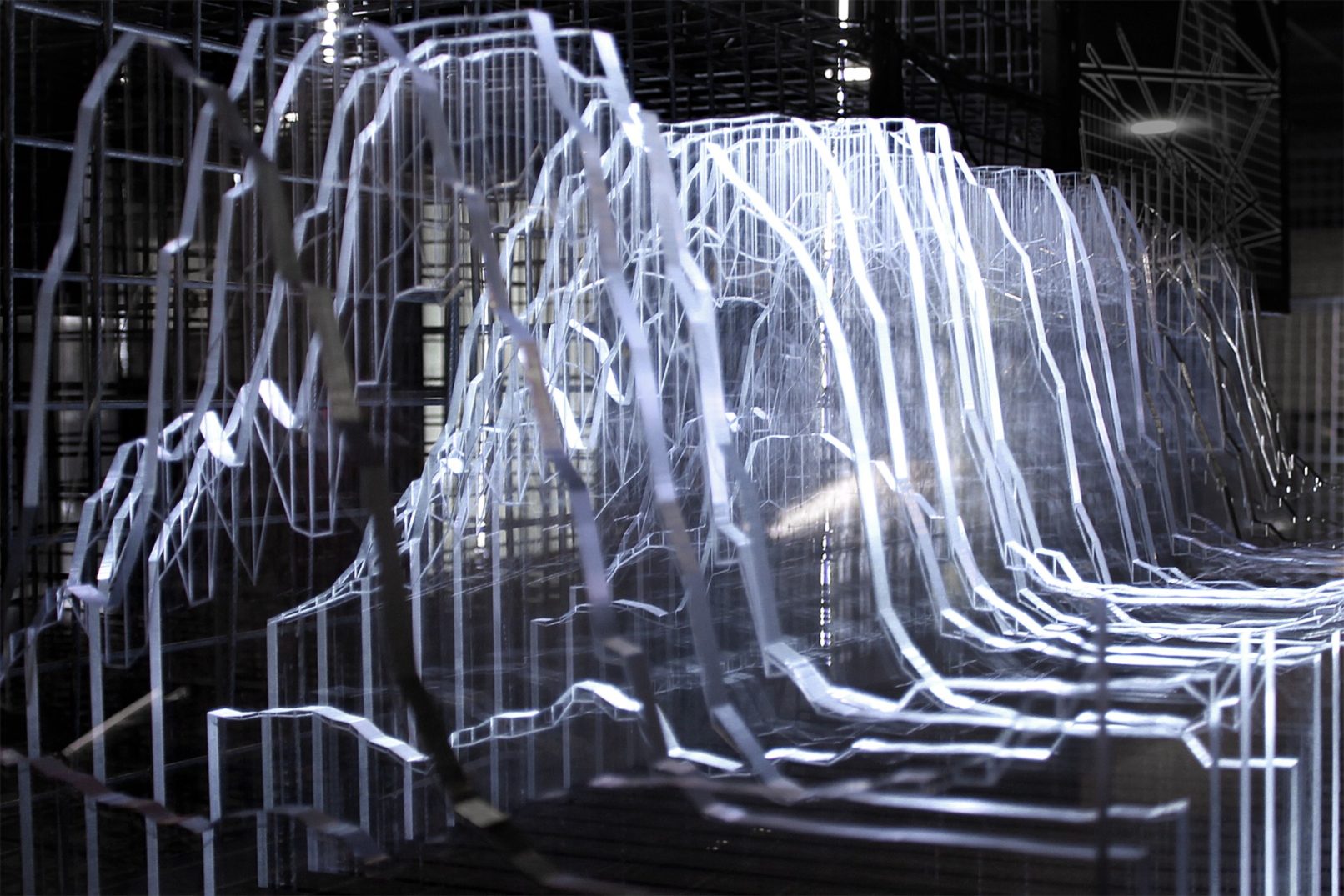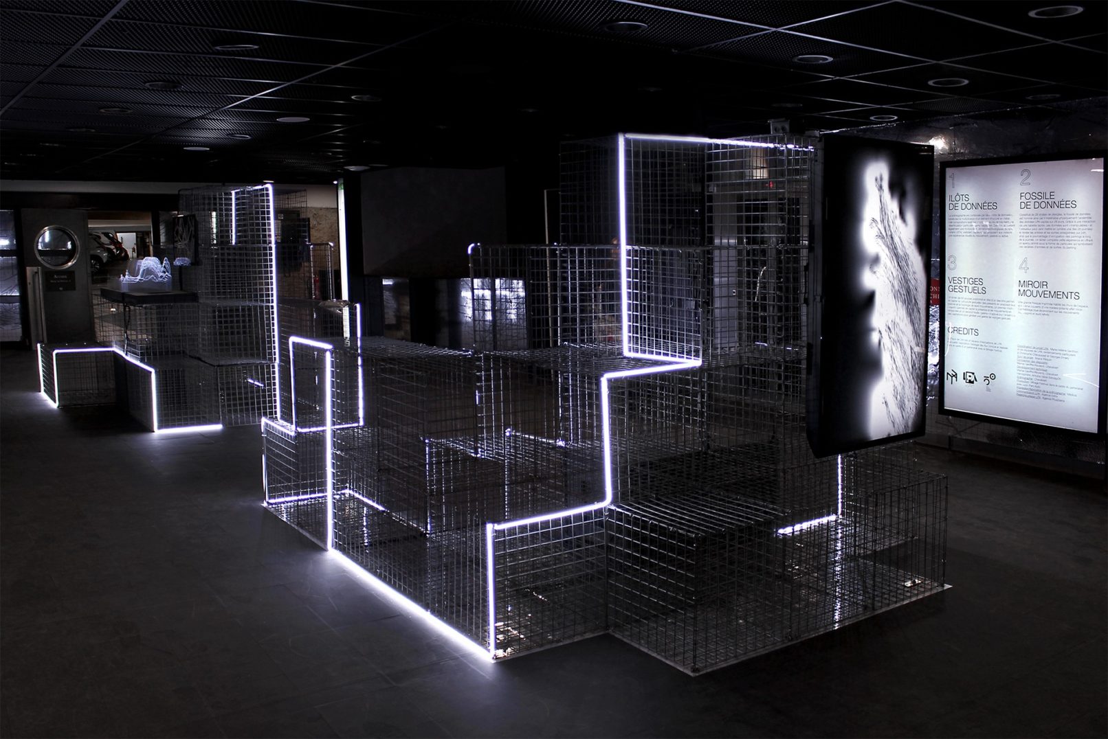 As part of an unprecedented partnership between Lyon Parc Auto and the Mirage Festival, Chevalvert studio and designer Martial Geoffre-Rouland were asked to create an interactive and luminous installation called “Geology of Flux”.